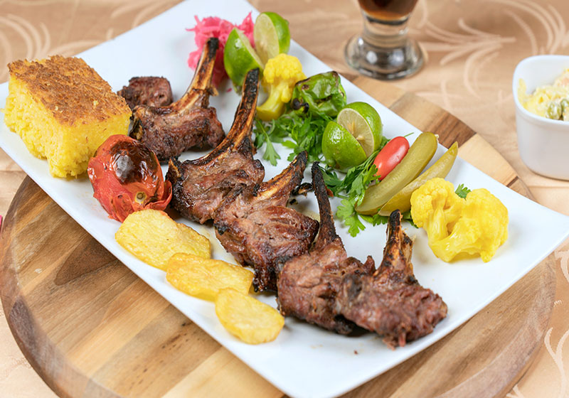 گوشت راسته گوسفند و سینه مرغ و دورچین